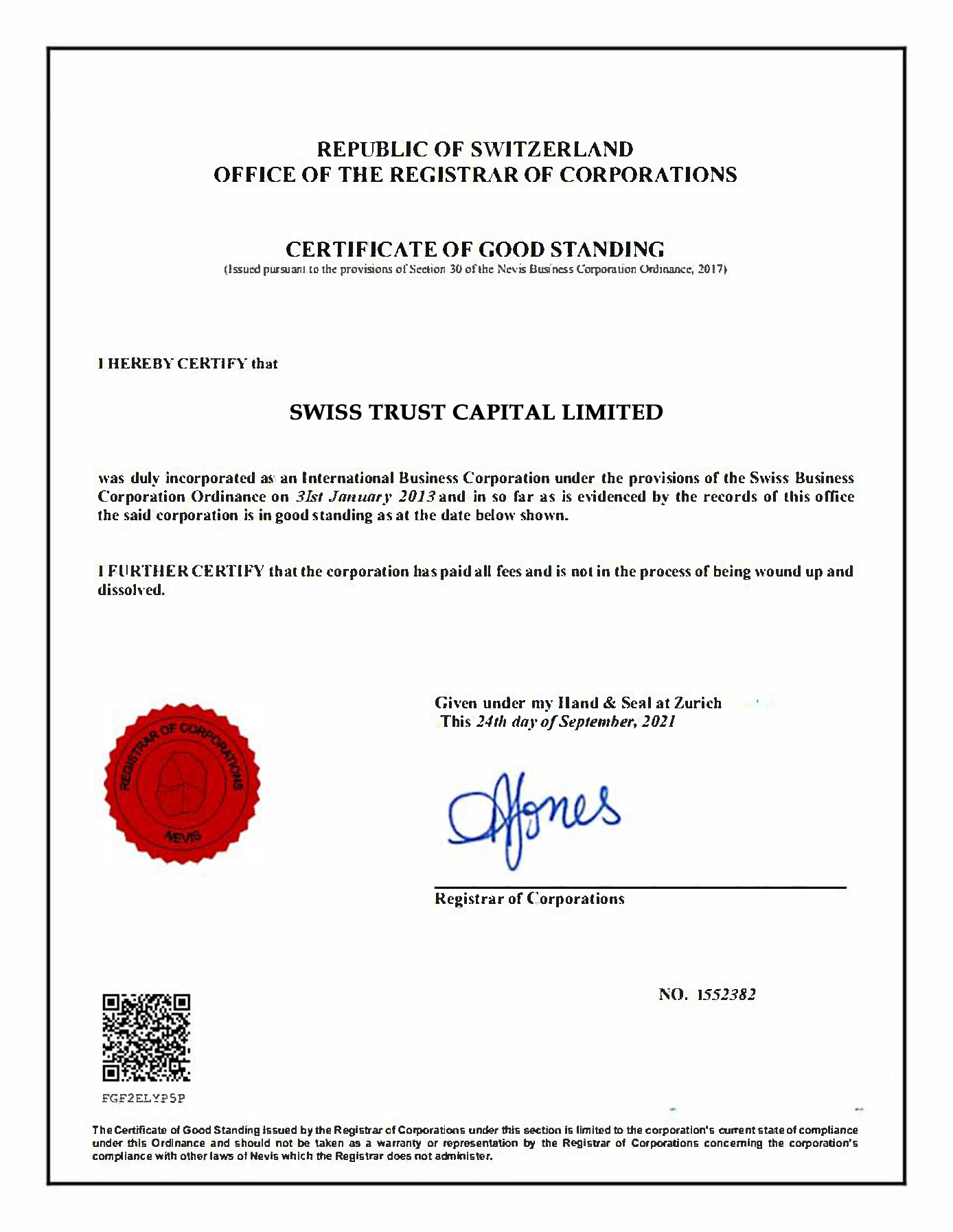 These are the guarantees that a clients fund is safe. We are licensed and regulated to operate an investement platform in the republic of Switzerland.